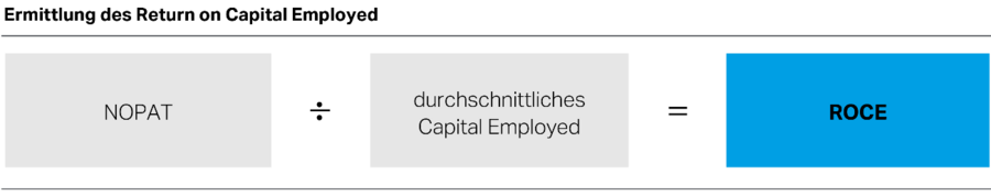 Der ROCE berechnet sich aus dem Verhältnis des EBIT nach kalkulatorischen Ertragsteuern (Net Operating Profit after Taxes, NOPAT) zum durchschnittlichen Capital Employed. Die kalkulatorischen Ertragsteuern ergeben sich aus der Multiplikation des kalkulatorischen Steuersatzes in Höhe von 25 % mit dem EBIT. Der ROCE wird alleinstehend neben dem ROCE über WACC als zusätzliche Messgröße für die Rentabilität von Covestro betrachtet.