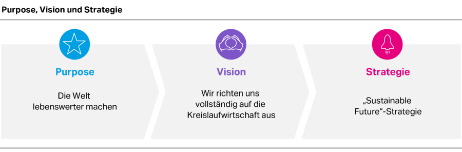 Unsere Vision, uns vollständig auf die Kreislaufwirtschaft auszurichten, ist das Zielbild für unsere Konzernstrategie „Sustainable Future“. Unsere Vision gibt uns damit eine klare Richtung vor, wohin wir uns als Unternehmen entwickeln wollen.